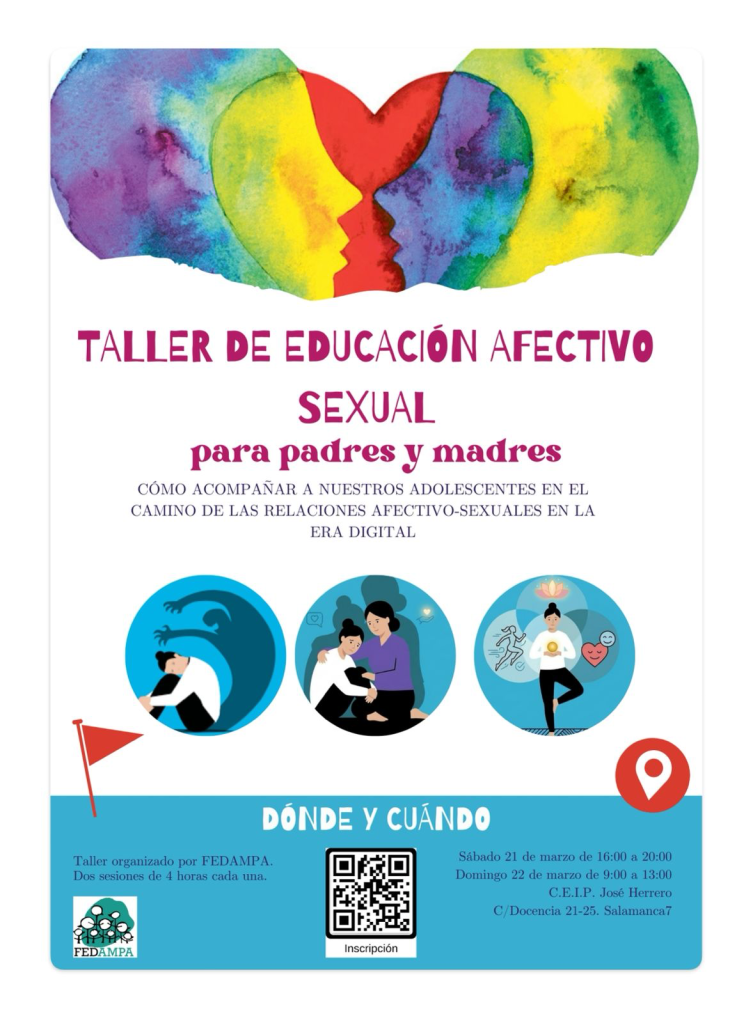 FEDAMPA Salamanca (Federación de Asociaciones de Madres y Padres de Alumnos de Salamanca) organiza el «Taller de Educación Afectivo-Sexual para Padres y Madres de Adolescentes», una formación práctica para acompañar a nuestros hijos en un terreno que hoy, con las redes sociales y el mundo digital de por medio, se ha vuelto más complejo que nunca.