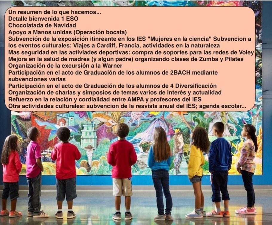 En la AMPA «Fuente del Cántaro» trabajamos para enriquecer la vida educativa, cultural y social de nuestro instituto. Estas son algunas de las actividades que desarrollamos a lo largo del curso: